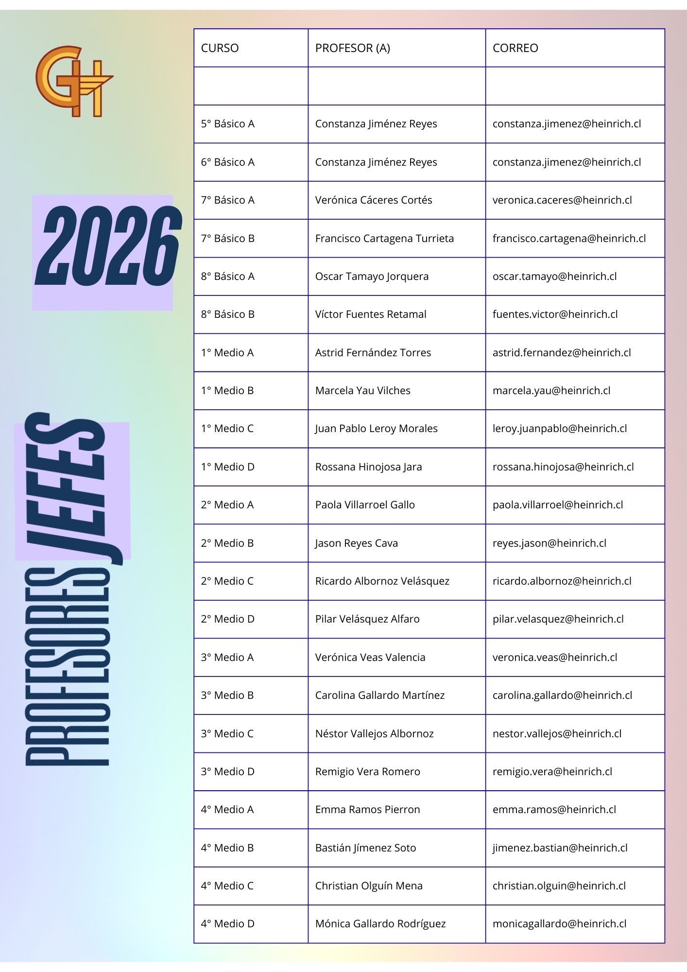 E-mails Profesores Jefes